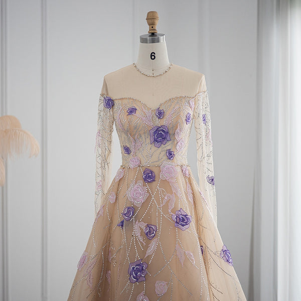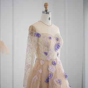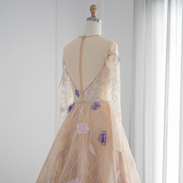 Vestido de Festa Longo Florido Dubai Champanhe - Modelo Especial
